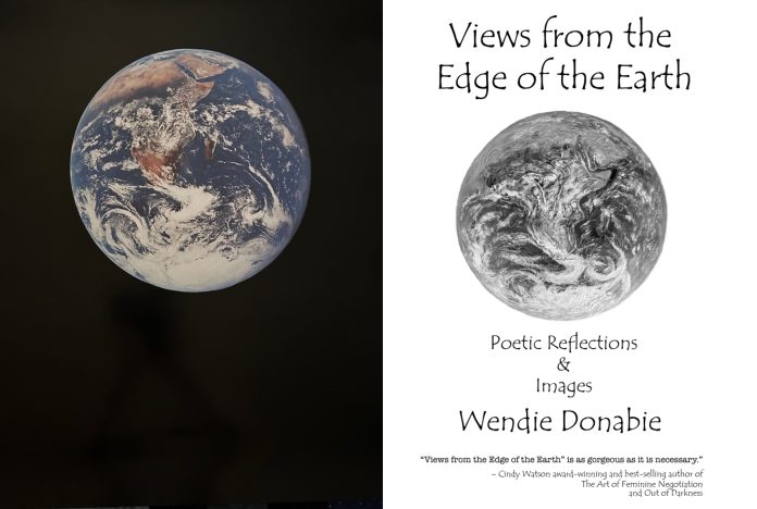 McTaggart has offered Donabie eighteen posters from the last printing to give out at the book launch on June 2. She felt the two went hand in hand. It is no coincidence that the painting gracing the cover of Views from the Edge of the Earth was inspired by the Blue Marble photo.