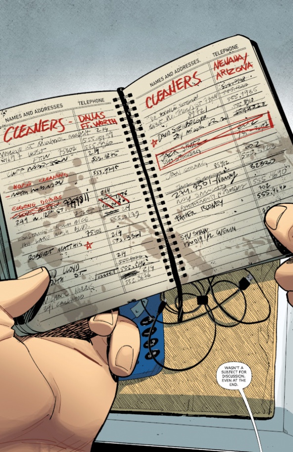 Imagine this: You inherent a home from your late father. While cleaning up you discover a small notebook with numbers for “cleaners” and “decorators.” It’s hard to shake the feeling that these aren’t your average home beautification professionals. And after an unfortunate turn of events, you dial one and find out for yourself. This is where Cole finds himself in the first issue of “Little Black Book,” a four issues miniseries from AWA Studios. “Gatsby” artist Felipe Cunha returns to provide interiors, with colors by Marco Lesko, letters by Steve Wands, and covers from Francesco Francavilla. But scripting this neo-noir western thriller is Jeff McComsey.