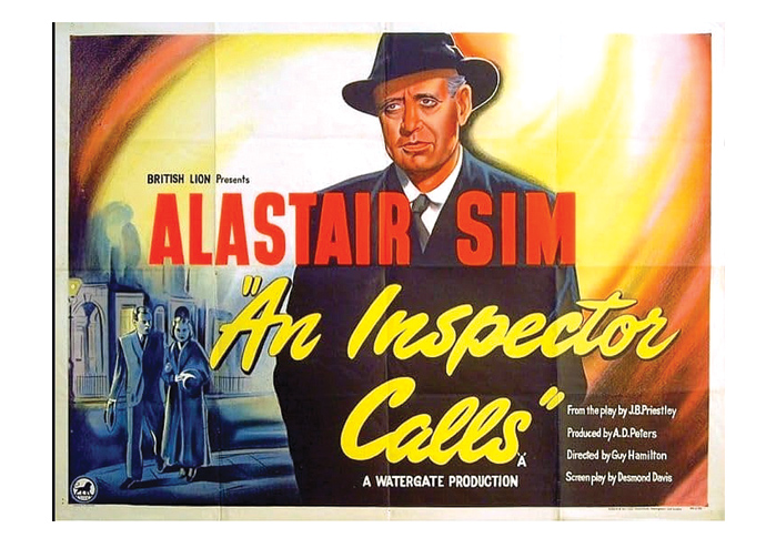 The poster for the 1954 film version of An Inspector Calls starring Alastair Sim