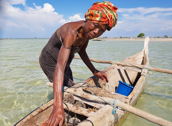 A Vezo fisher in southern Madagascar sorts her catch of sea urchins. Amber Carter / SeaVoice
