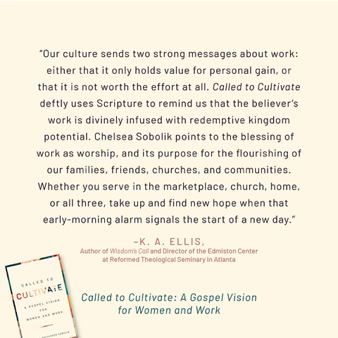 I always like to know a little something about an author before I sit down to open up his or her book. Today, I’m excited to interview author Chelsea Sobolik about her new book, Called to Cultivate: A Gospel Vision for Women and Work. After navigating a challenging season in her own vocation, Chelsea was inspired to create a resource for women that faithfully engages their questions and provides practical rhythms that they can incorporate into their lives to flourish in their work.