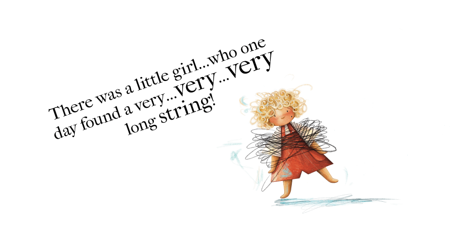 The story is beautifully simple. A little girl finds a bundle of string, unravels it, then holds one end and goes off on an adventure. Just when she thinks… Well, we won’t spoil it for you. However, Jess trained as a graphic designer, so it’s not surprising that the narrative – simple though it may be – has a powerful and meaningful concept behind it.