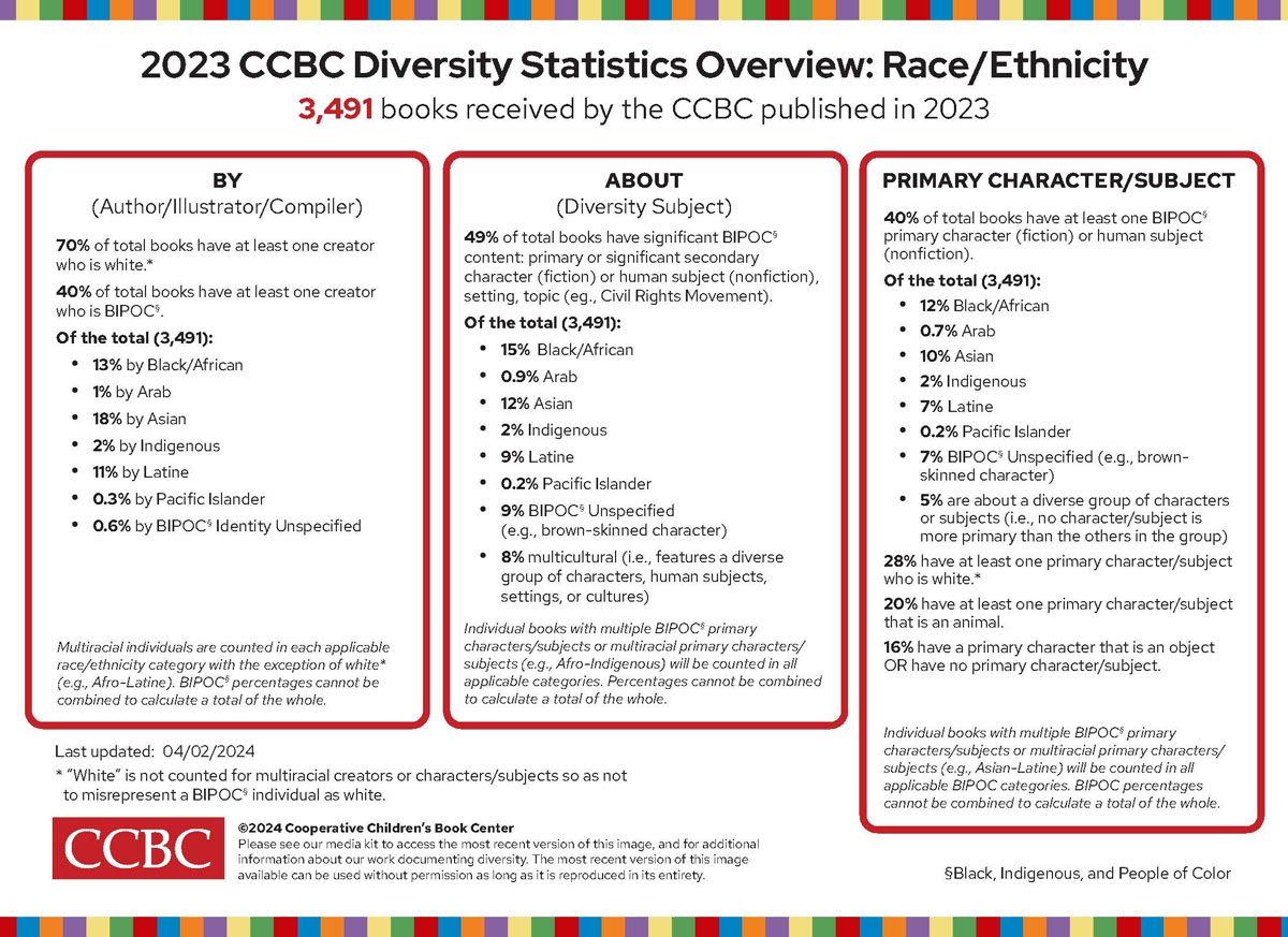 For this report, the CCBC analyzed 3,491 books for children and teens that were published in 2023.