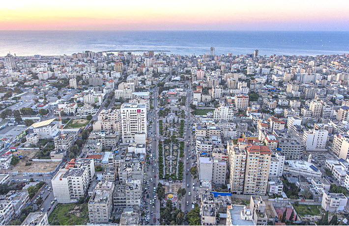 A December 2021 drone image of Gaza City’s Al-Rimal, a district much of which was reported on October 25, 2023, to have been ‘reduced to rubble’ by airstrikes in a story for the Financial Times by Mai Khaled, Lucy Rodgers, Sam Joiner, Dan Clark, Irene de la Torre Arenas, and Steven Bernard. Image – Getty iStockphoto Soliman Hijjy