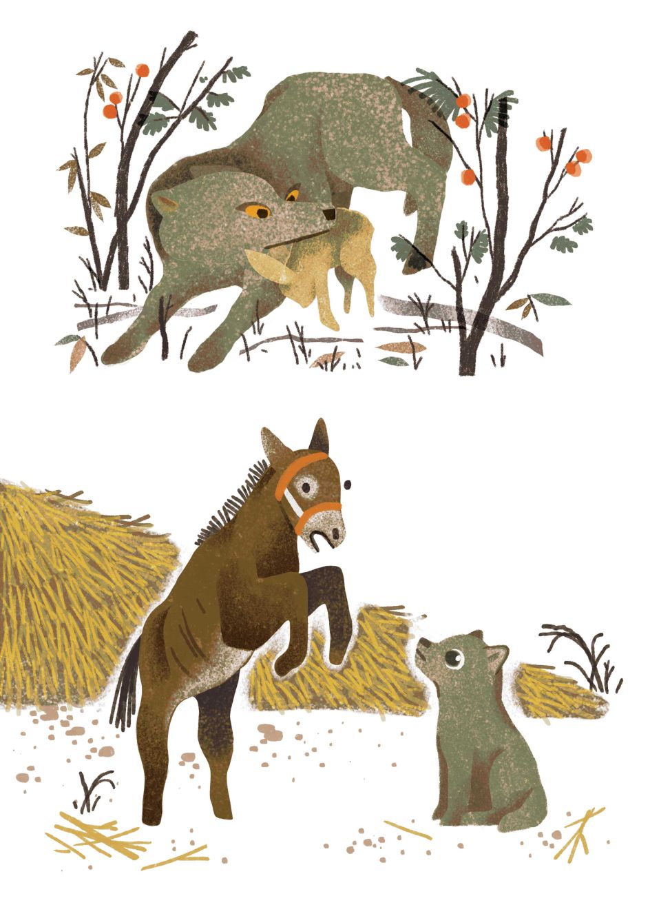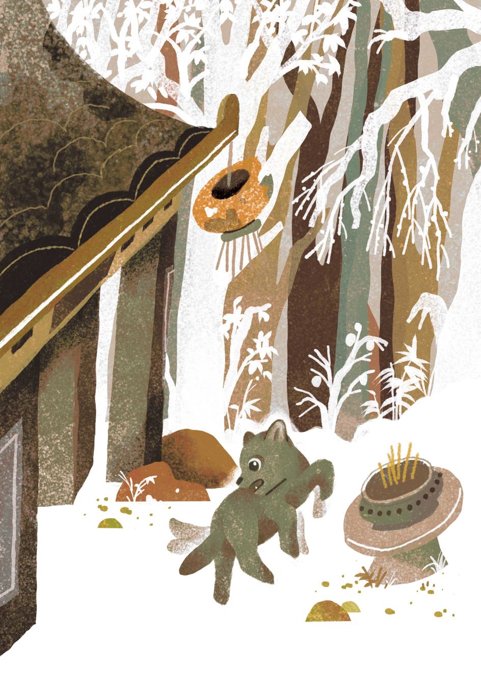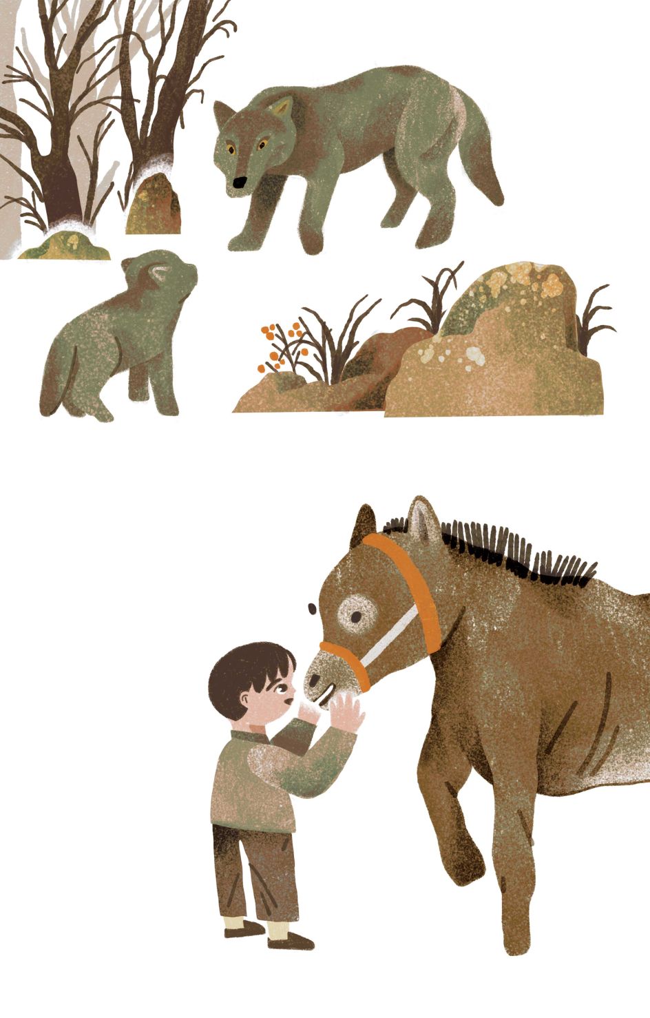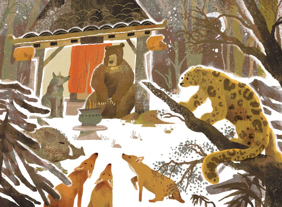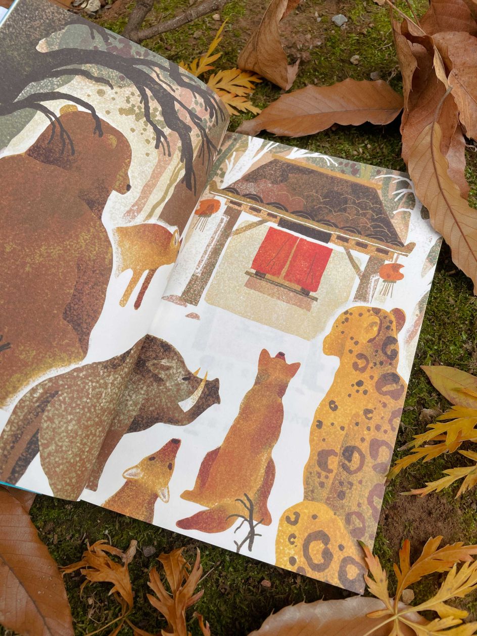 Written by Chinese author Guiping Feng, Mountain Temple tells the story of a hunter’s son named Ding. One day, after following an old wolf, Ding is led to the temple of the Mountain God. Here, he faces the consequences of his father’s actions as the animal kingdom contemplates revenge. In a pivotal moment, the Mountain God transforms Ding into a baby wolf who must seek help from a father who no longer recognises him.