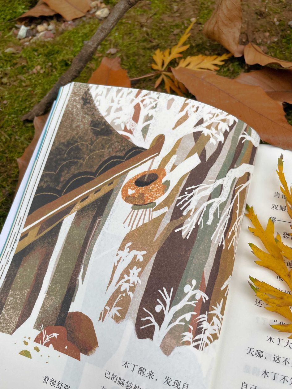 While Mountain Temple may be Wenjia’s first fiction book, it’s easy to see why she was chosen. Her lush style perfectly depicts nature, a key requirement of the story. “I like to depict nature serenely and peacefully with subtle speckled textures,” Wenjia adds.